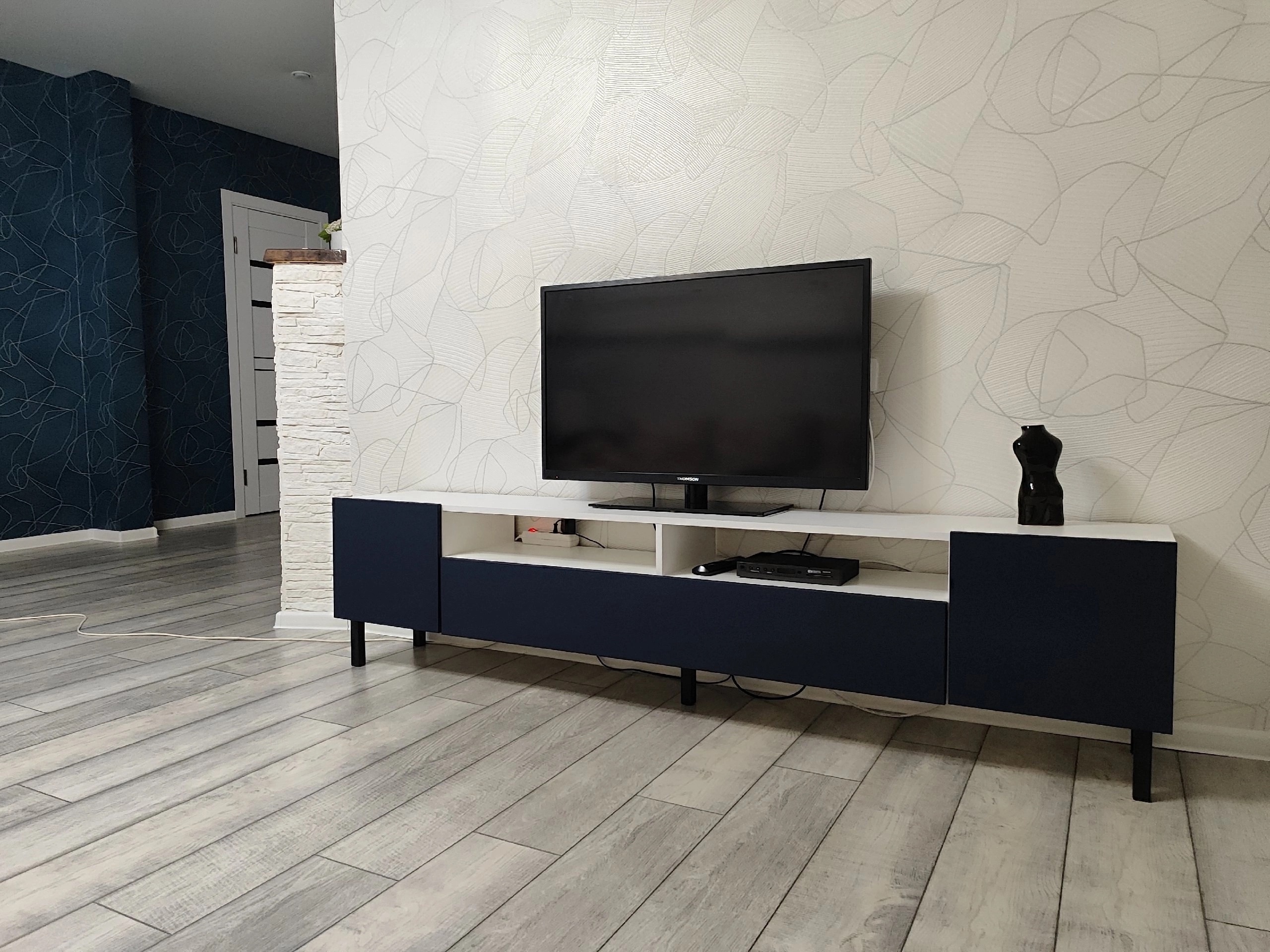 Тв-тумба на ногах Соло с гладкими фасадами, расцветку можно выбрать, изготавливаем под заказ.