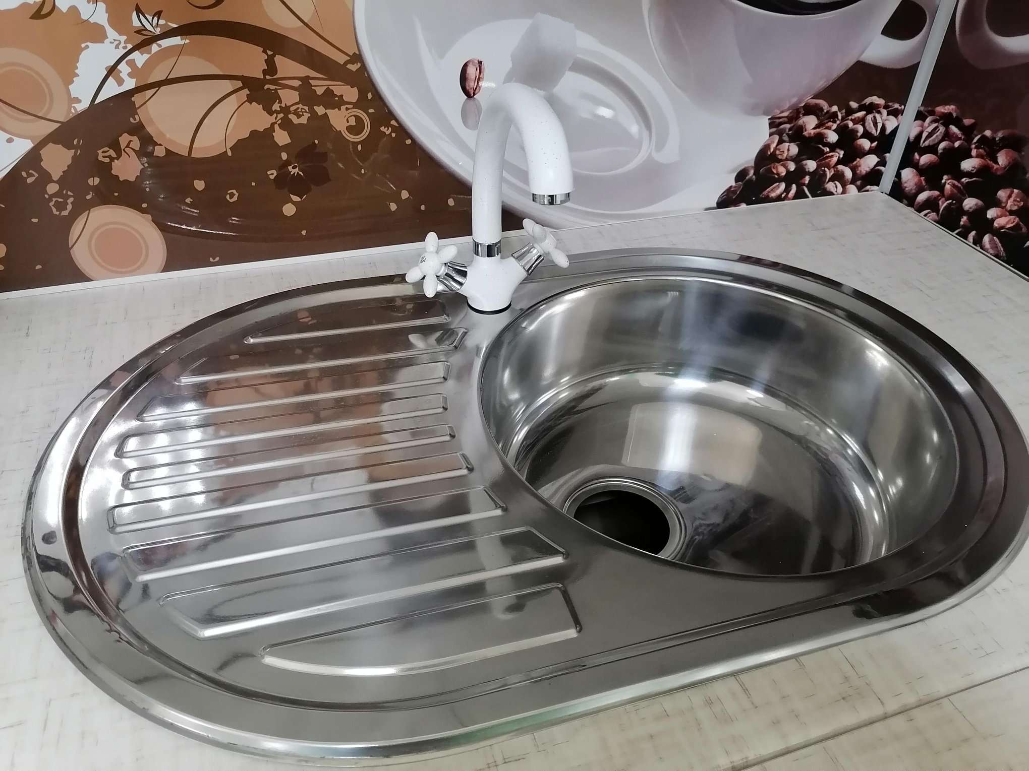 Мойка врезная овал 770 мм нержавейка сушка слева/справа