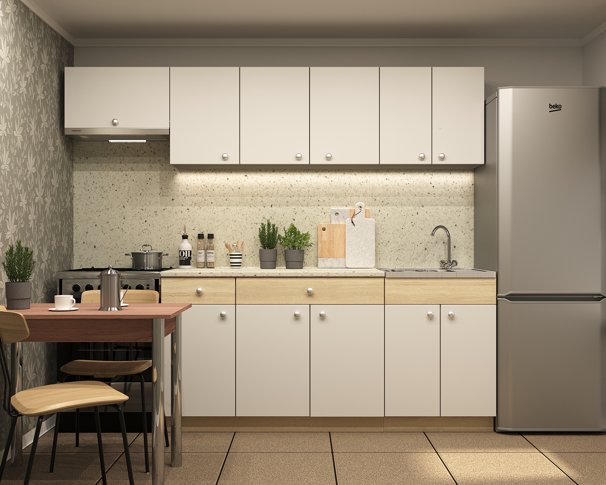 Сушилка для посуды, стеновая панель,смеситель приобретаются отдельно.