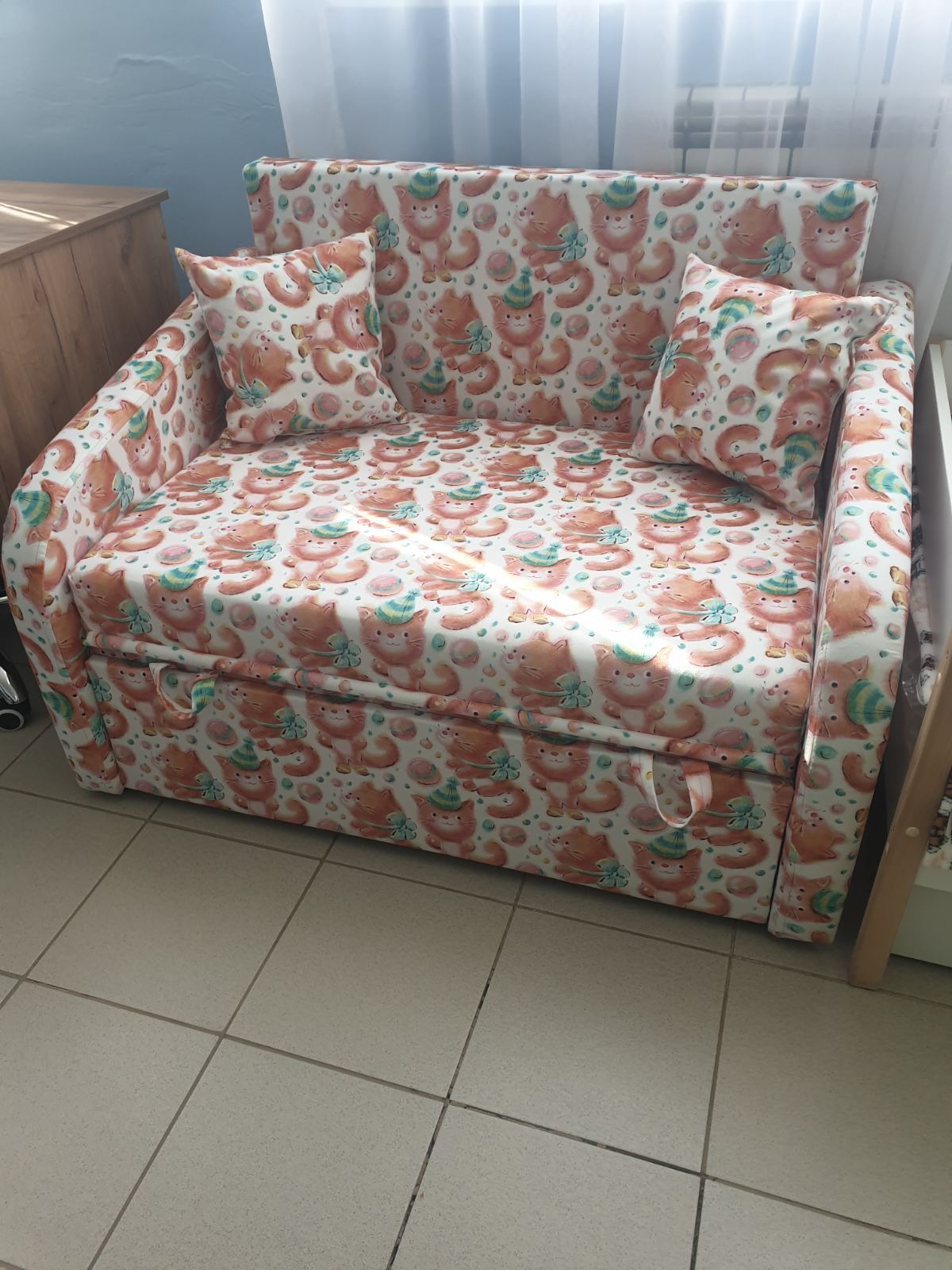 Механизм - "телескоп". В комплектацию дивана входят две красивые подушки.