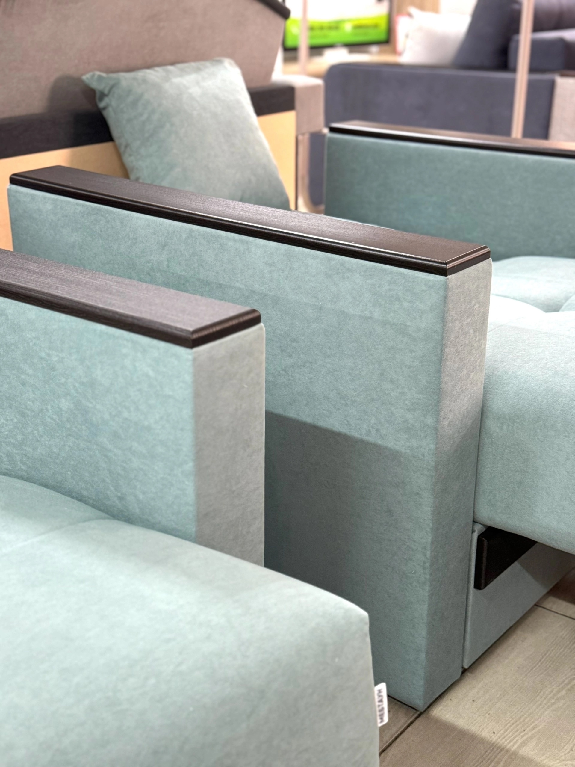 На подлокотниках МДФ накладки, 2 подушки в комплекте.
