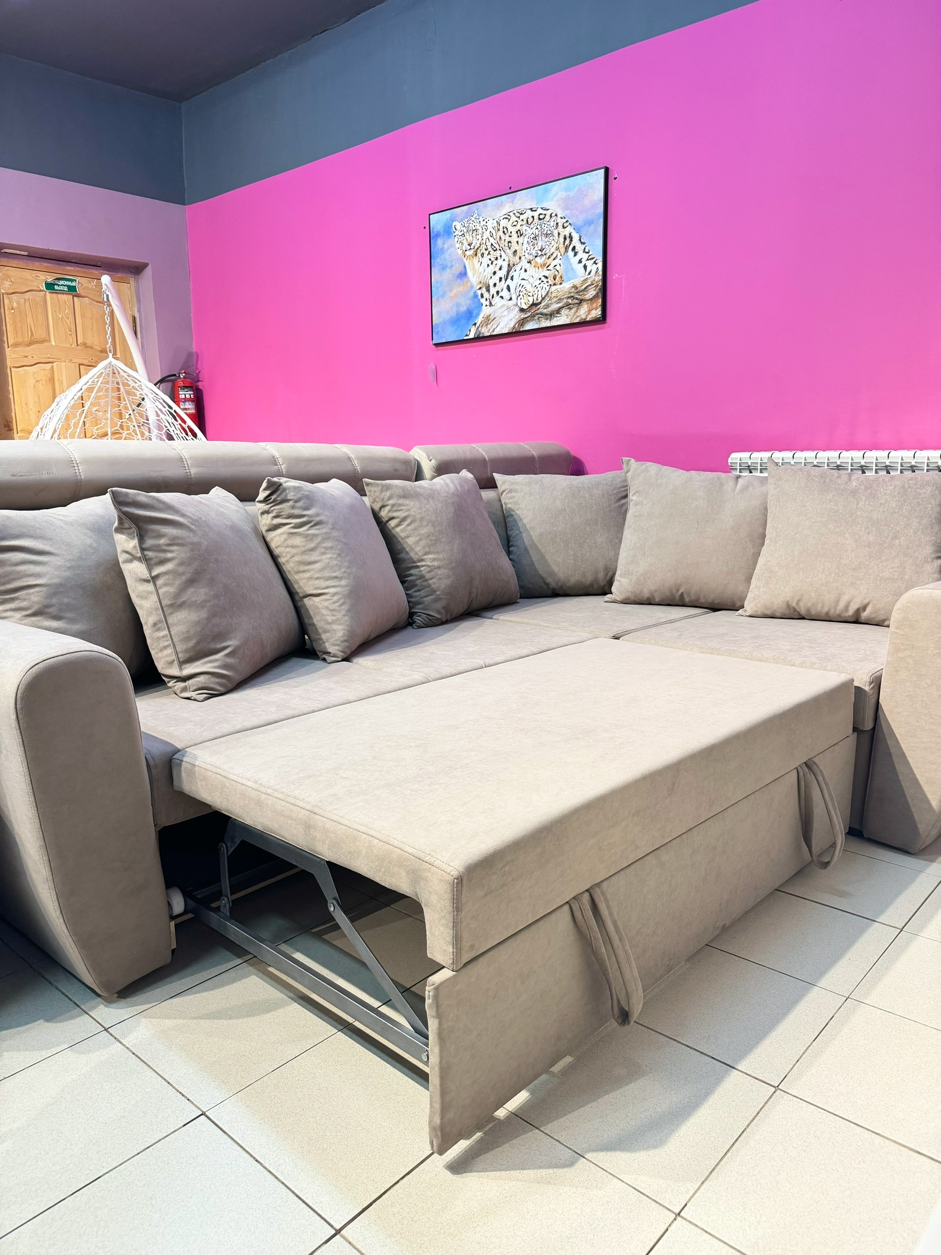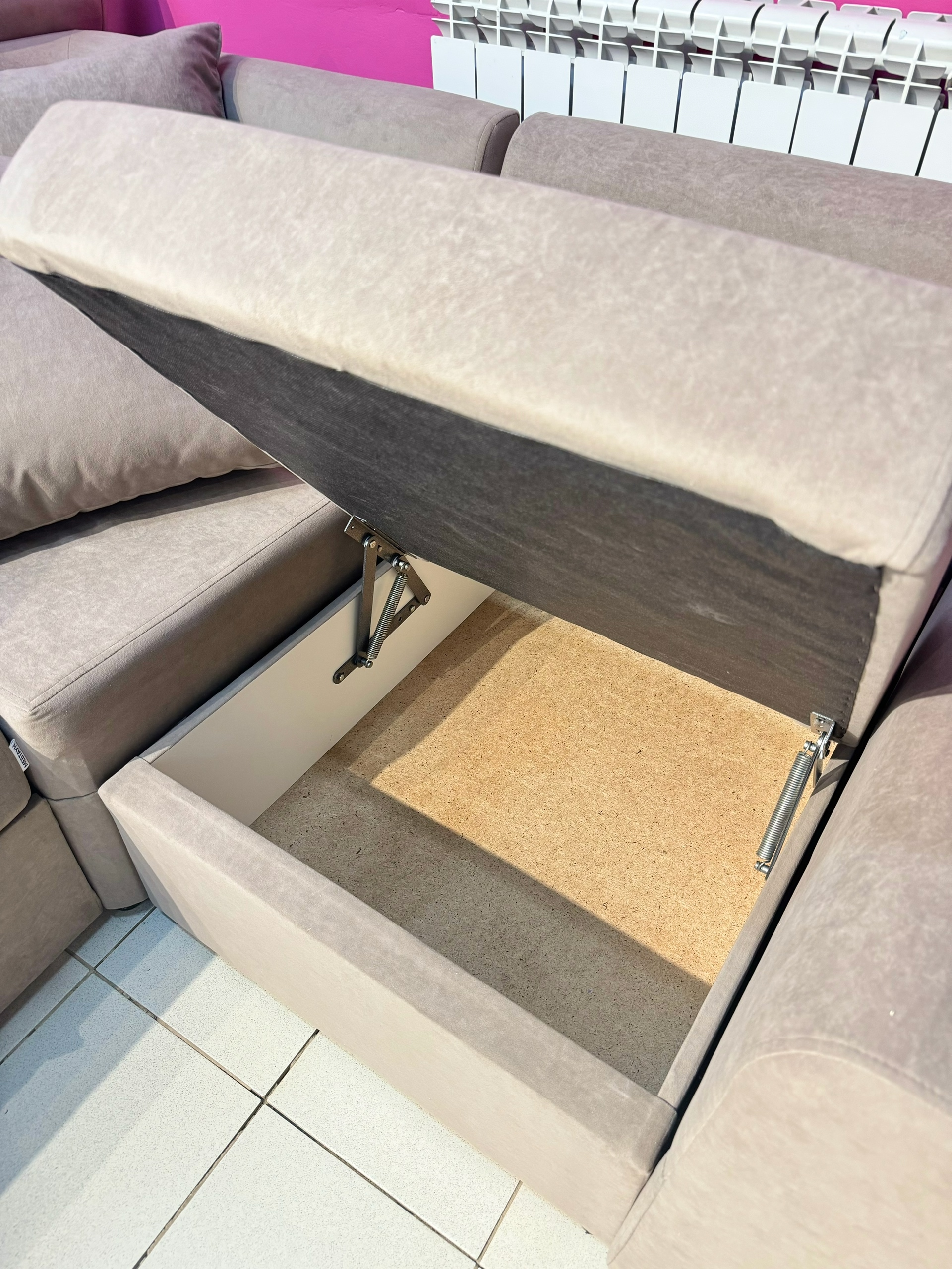 Материал обивки: флок на рогожке в сером и бежевом цвете