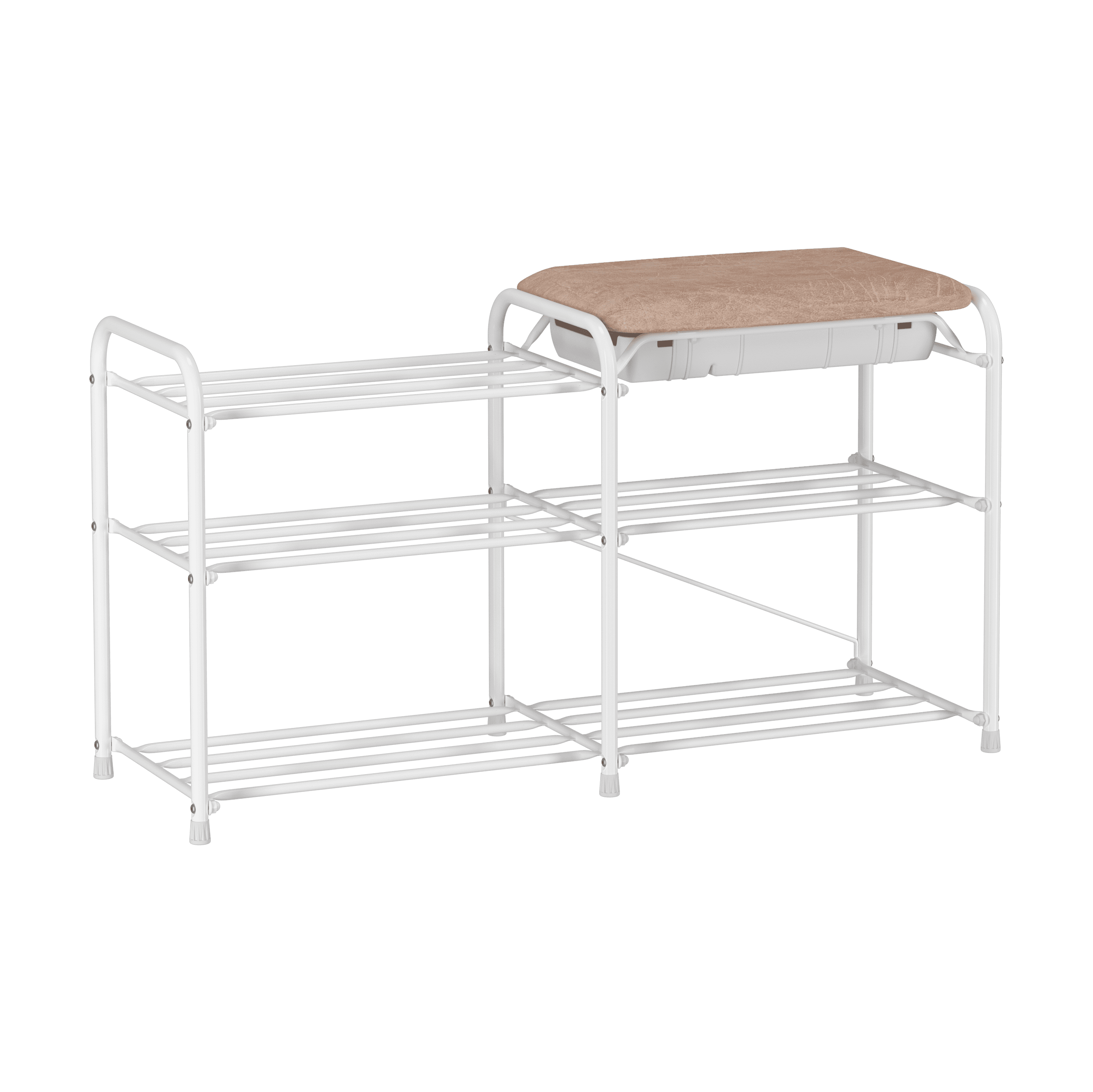 Подставка для обуви"Альфа 33" с сиденьем и ящиком 870*300*480 цвет белый